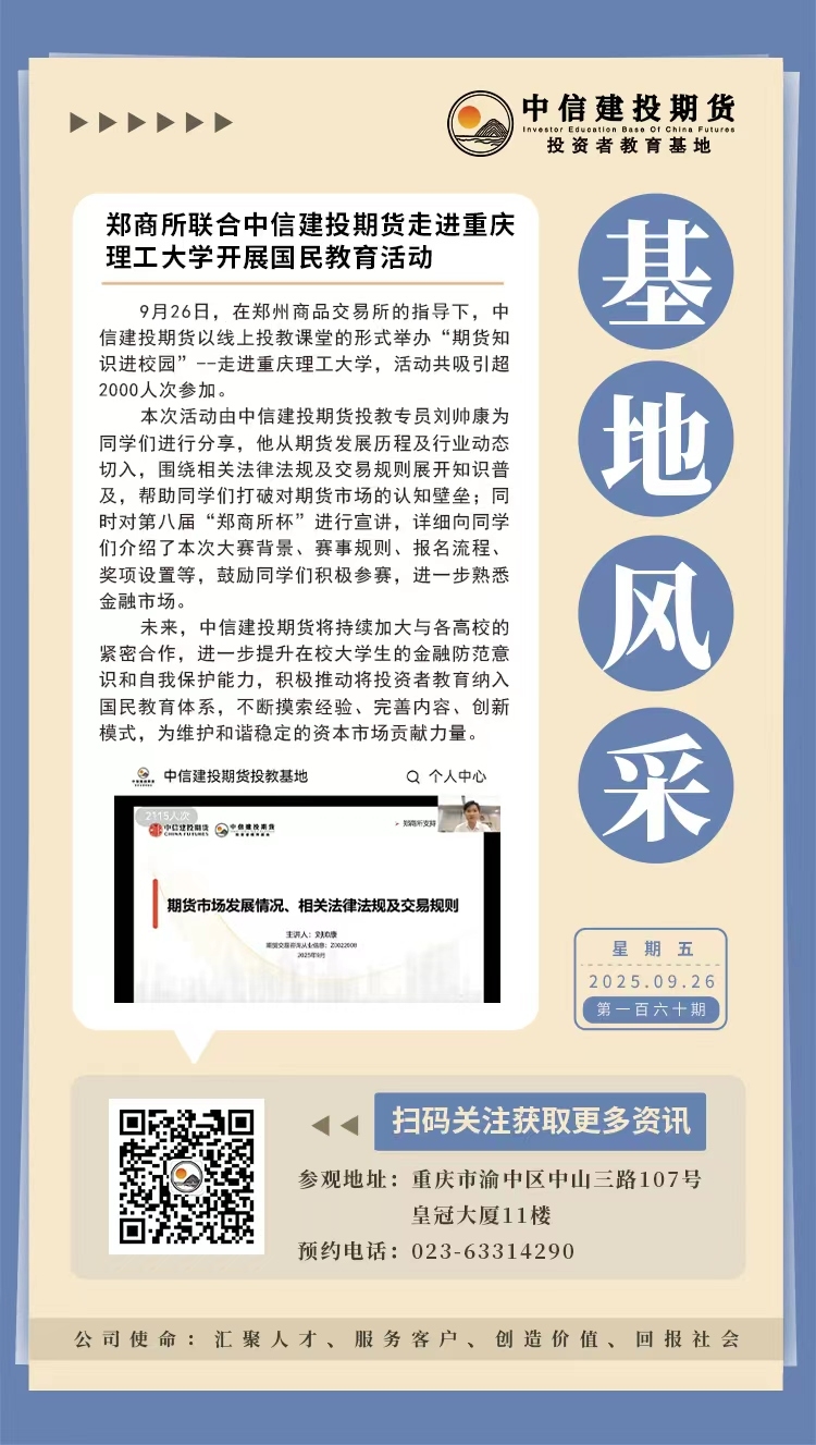 【活动报道】基地风采第160期:郑商所联合中信建投期货走进重庆理工大学开展国民教育活动