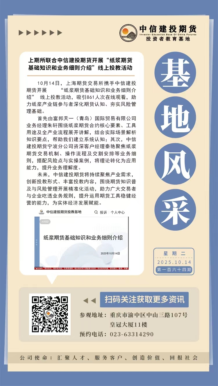 【活动报道】基地风采第164期:上期所联合中信建投期货开展“纸浆期货基础知识和业务细则介绍”线上投教活动