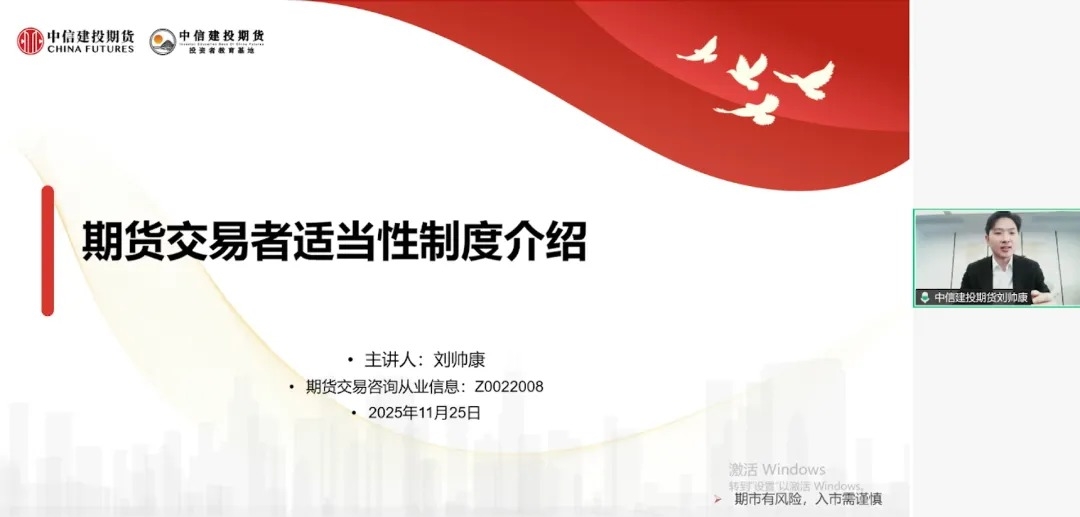 11月25日,在广州期货交易所的指导下,中信建投期货承办“广期所中小投资者服务系列培训”(第三期),活动通过广期所线上平台及中信建投期货H5知识店铺线上开展,共吸引超1000人次观看。
