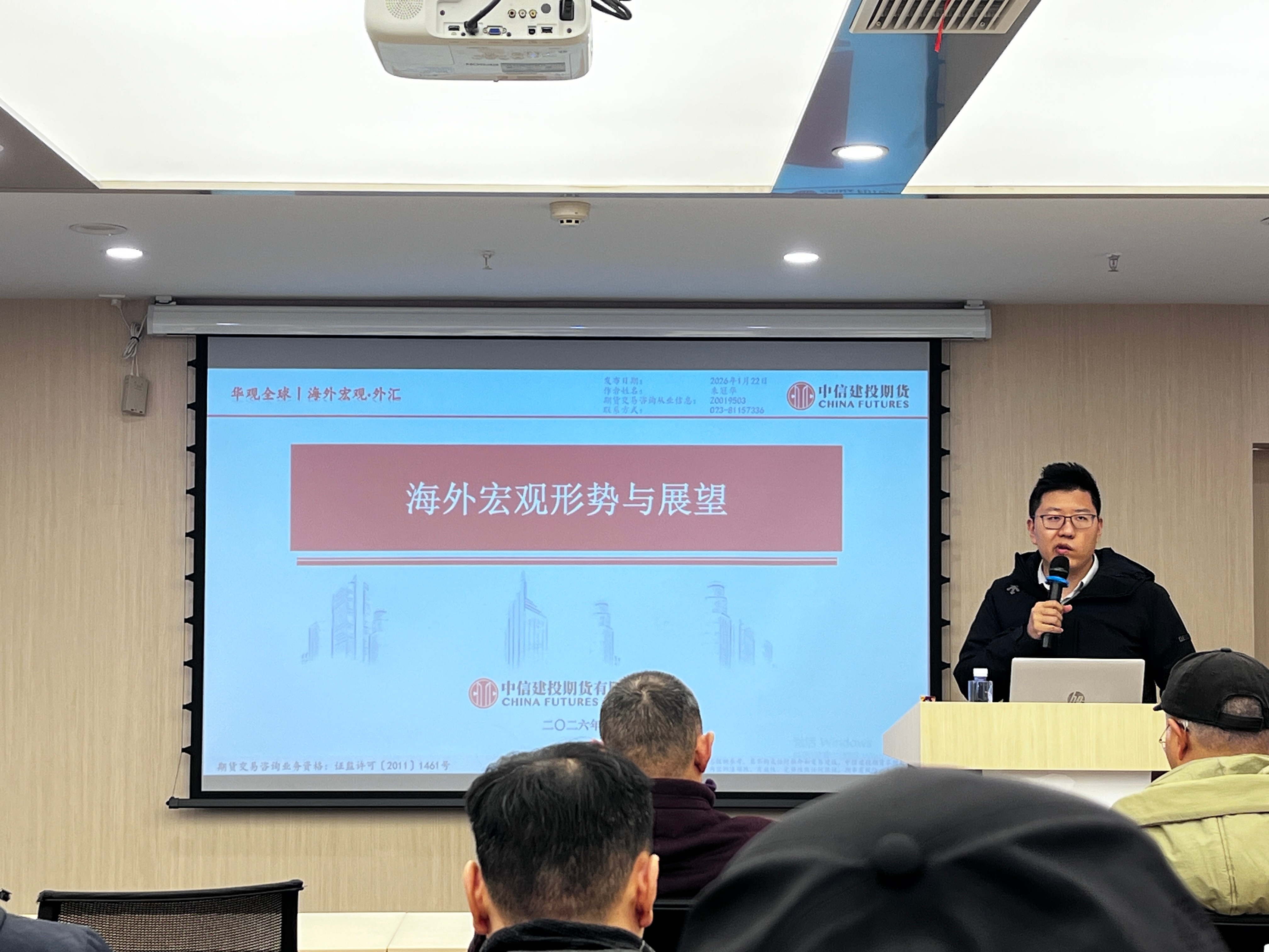 活动伊始,中信建投期货海外宏观和外汇研究员朱冠华带来《海外宏观形势与展望》主题分享,从全球主要经济体货币政策走向、地缘政治事件传导逻辑等维度,系统梳理了海外宏观环境对金融市场的影响路径,为交易者搭建了理解全球资本流动的分析框架。
