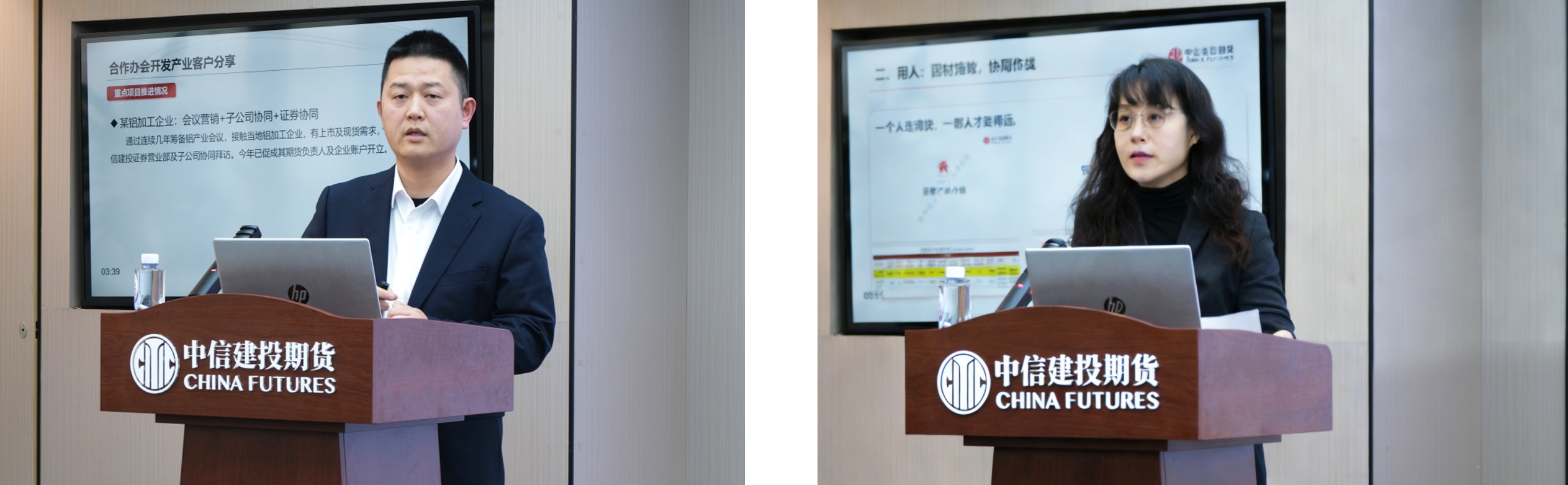 会上,公司总经理助理、上海分公司总经理岳重光,杭州分公司总经理龚吉安,广州分公司总经理徐德英,研究发展部兼产业部负责人夏旗,子公司副总经理、期现业务部负责人薛菲分别围绕分支机构多元化经营、党建引领提升买方服务能力、产业客户开发与服务、研究服务协同及投研产品化赋能、大宗商品风险管理业务的价值实践作专题报告。