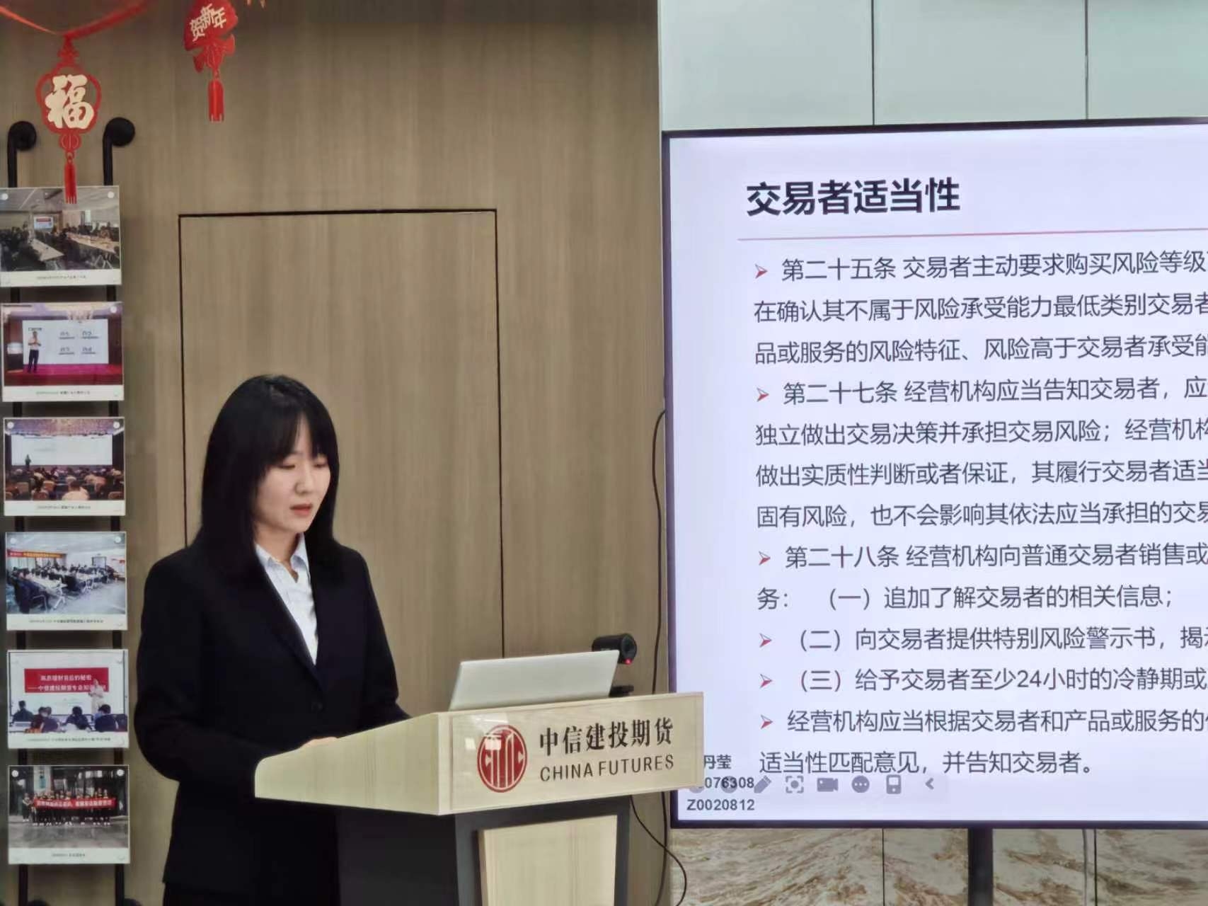 随后,中信建投期货讲师姚丹莹围绕企业参与期货市场的准入规则及螺纹钢产业现状进行了深度分享。她首先依据相关法律法规,对交易者适当性管理制度进行了详细解读。在市场分析环节,姚丹莹深入剖析了螺纹钢市场的基本面逻辑。此外,针对产业客户迫切的风险管理需求,重点介绍了利用期权进行套期保值的实务策略,详细拆解了买入看涨/看跌期权等四种基本策略及双限套保模式,旨在通过多元化的金融工具,助力产业客户有效管理价格风险。