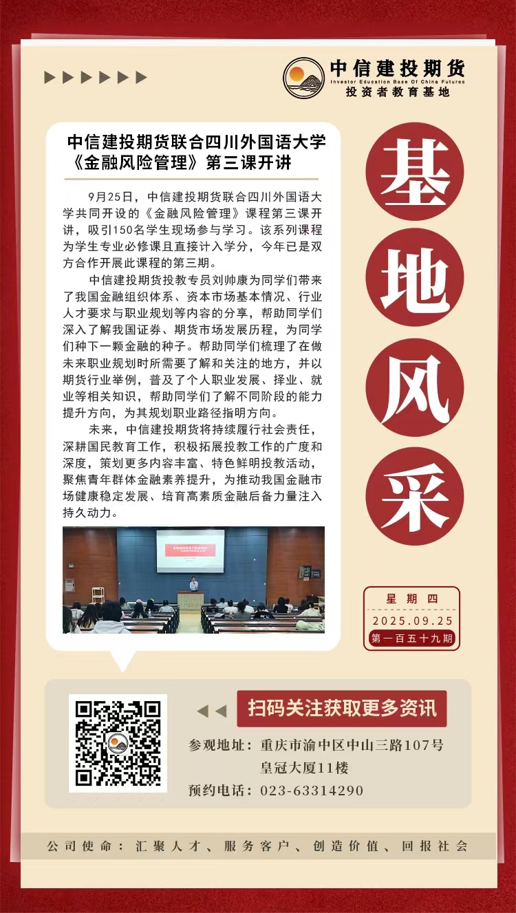 【活动报道】基地风采第159期:中信建投期货联合四川外国语大学《金融风险管理》第三课开讲