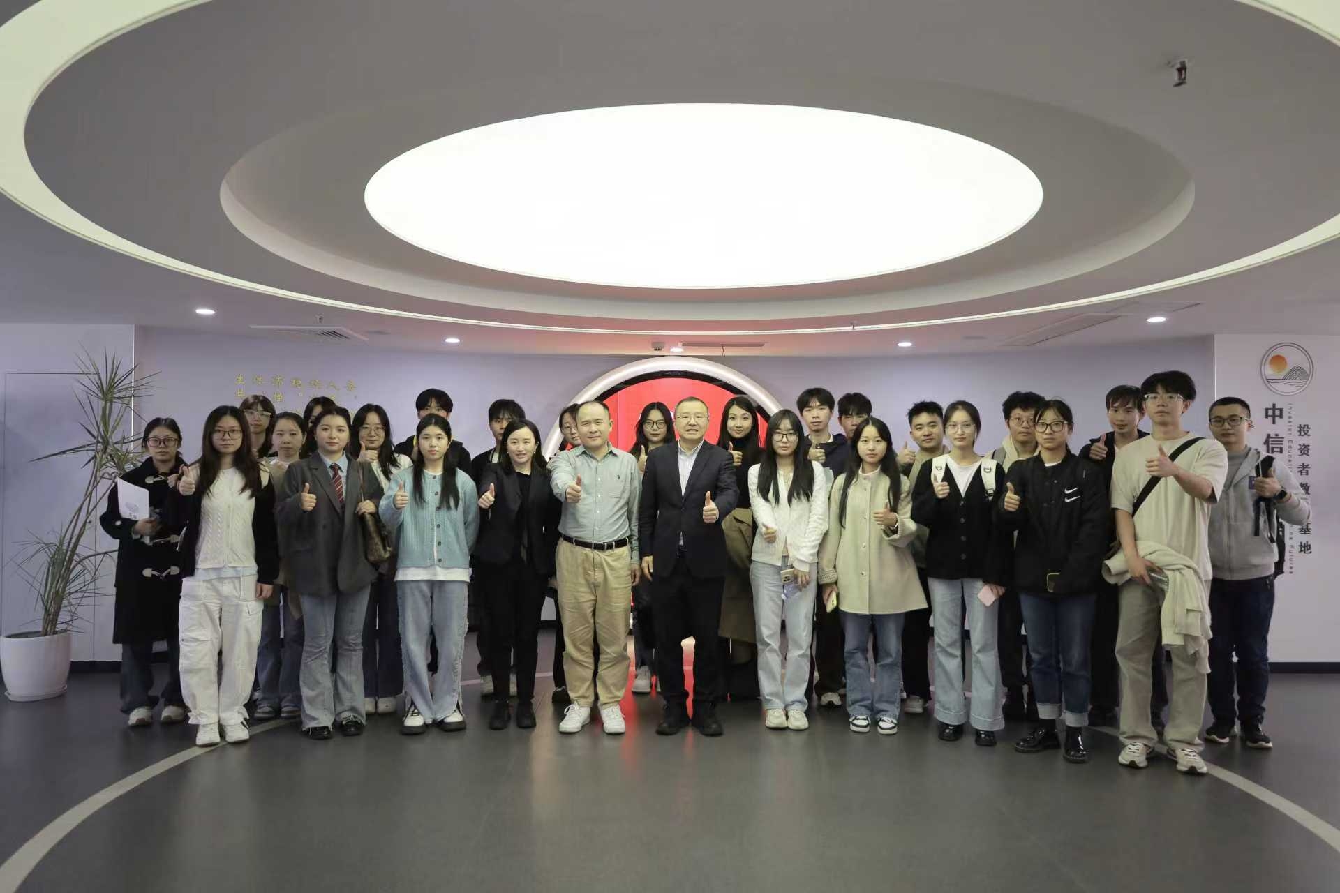 座谈结束后,廖湘俊总经理陪同师生一行参观了中信建投期货投资者教育基地。通过现场讲解与互动体验,师生们对期货市场的发展历程、投资者教育实践以及公司的社会责任有了更为直观和深入的了解。