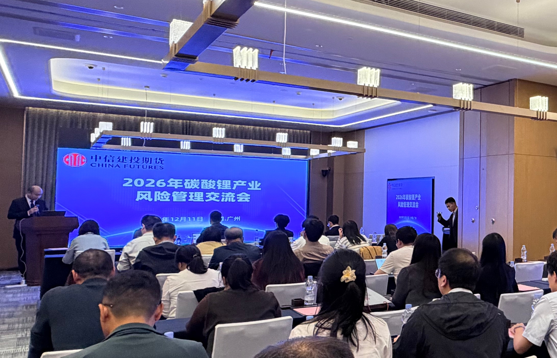 12月11日,由广州期货交易所支持,中信建投期货主办的“2026年碳酸锂产业风险管理交流会”在广州圆满举行。活动聚焦储能市场、碳酸锂供需及风险管理实操,吸引产业链50余名代表现场参与,中信建投期货广州分公司总经理徐德英主持活动。