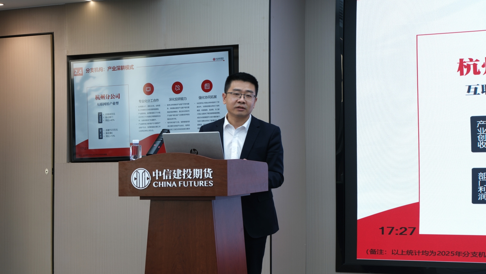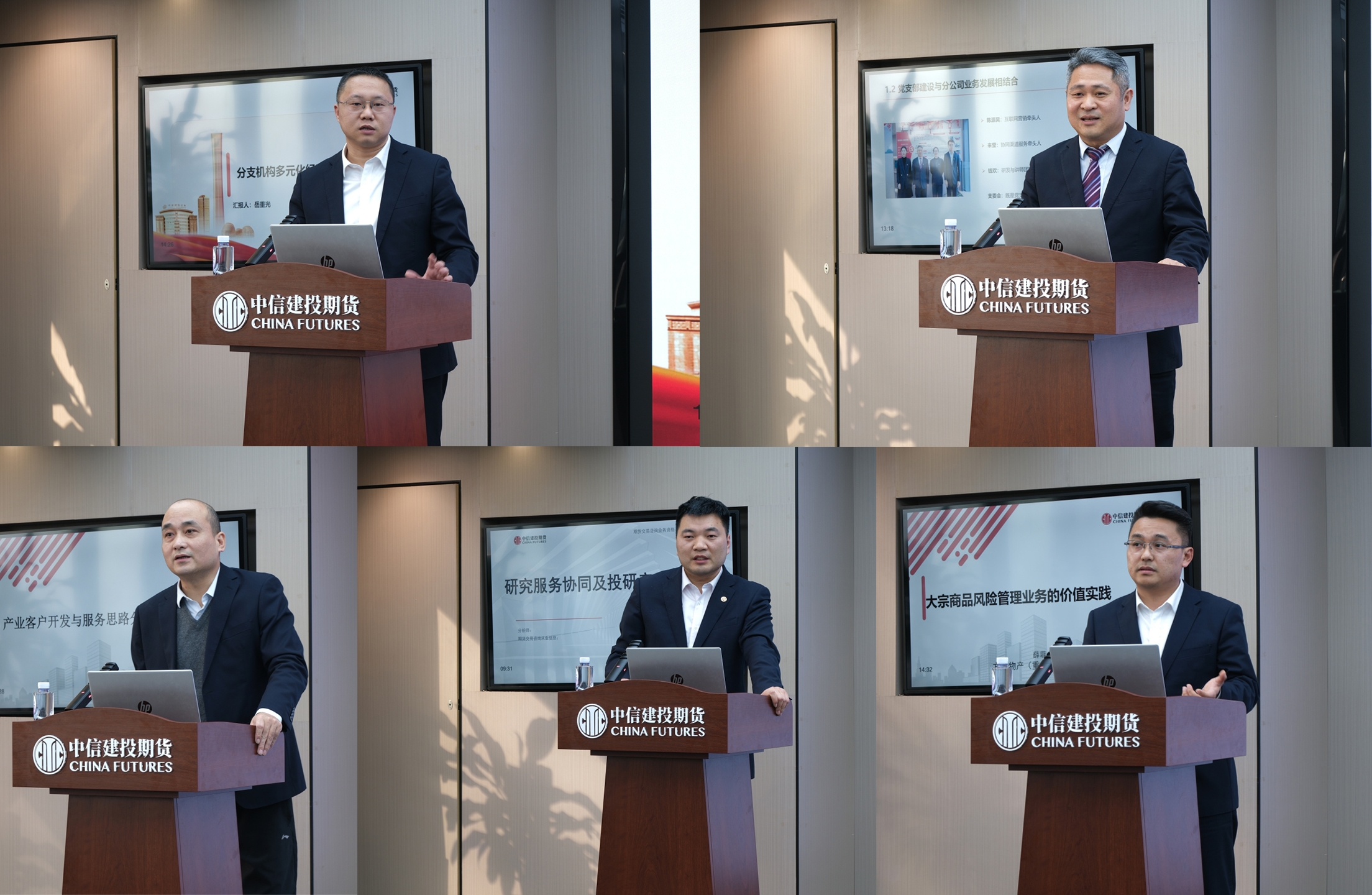会上,公司总经理助理、上海分公司总经理岳重光,杭州分公司总经理龚吉安,广州分公司总经理徐德英,研究发展部兼产业部负责人夏旗,子公司副总经理、期现业务部负责人薛菲分别围绕分支机构多元化经营、党建引领提升买方服务能力、产业客户开发与服务、研究服务协同及投研产品化赋能、大宗商品风险管理业务的价值实践作专题报告。
